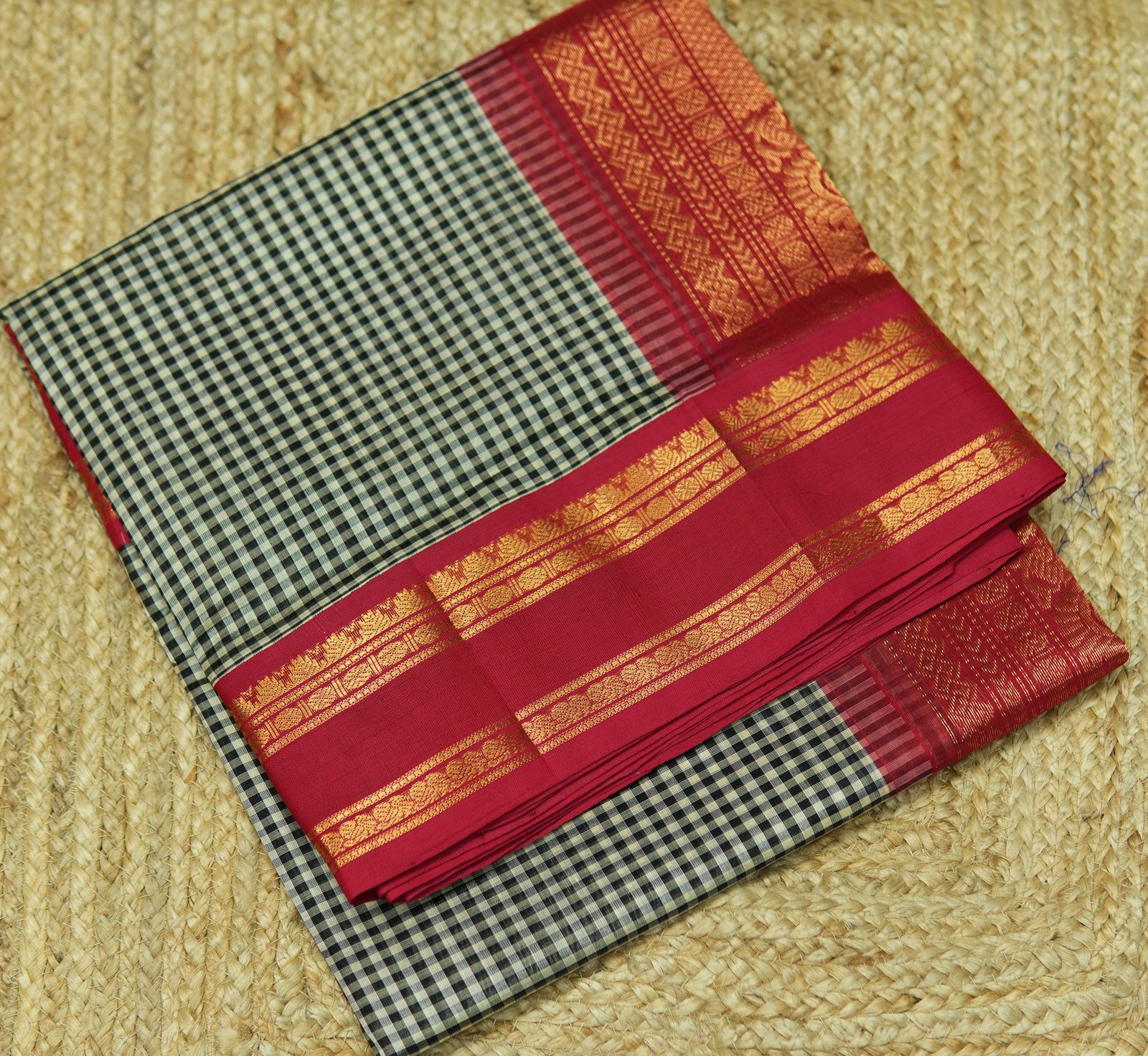 - SilkCotton Korvai Gorgeous Saree Blends Classic Small Checks Elegance with a Modern Touch